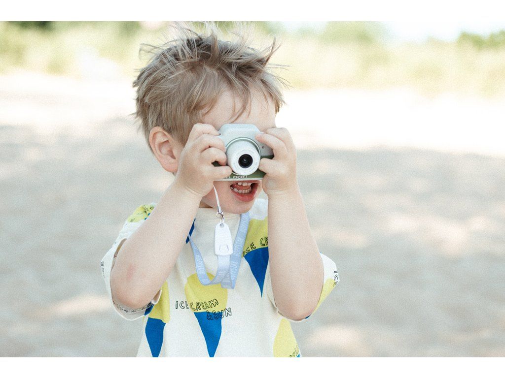 Stylový dětský fotoaparát s vysokým rozlišením, otočným displejem, možností natáčet videa a kreativními funkcemi pro malé tvůrce od 3 let.