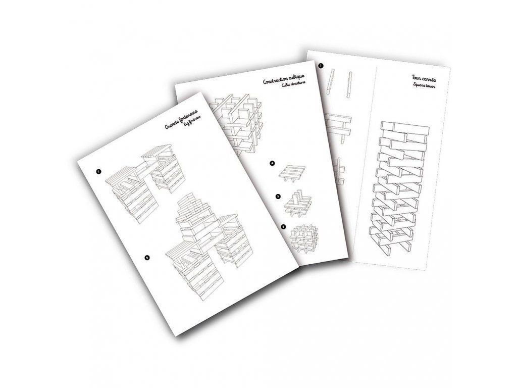 Stavebnice vyrobená z přírodního masivního dřeva. Obsahuje 100 malých kostek, které pomáhají dětem rozvíjet jejich představivost. Balení také obsahuje stavební návody. Vyrobeno ve Francii.