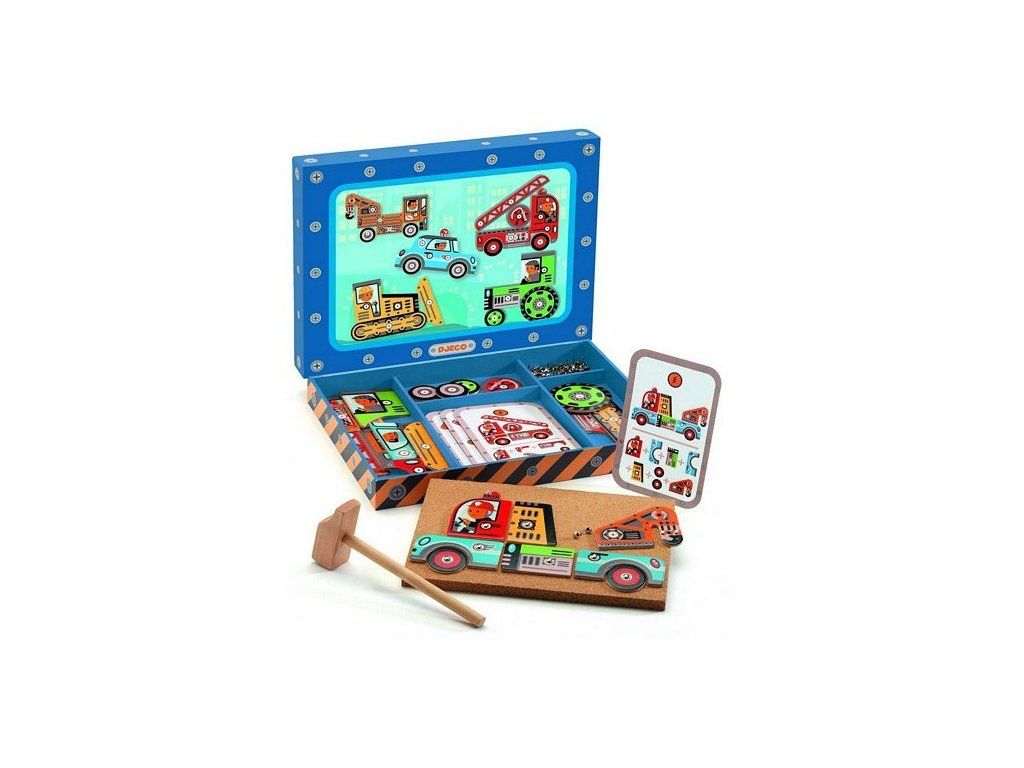Krásná a zábavná zatloukací hra hlavně pro kluky. Jeřáb, odtahovka nebo hasiči. Sestav si auto podle svých představ.