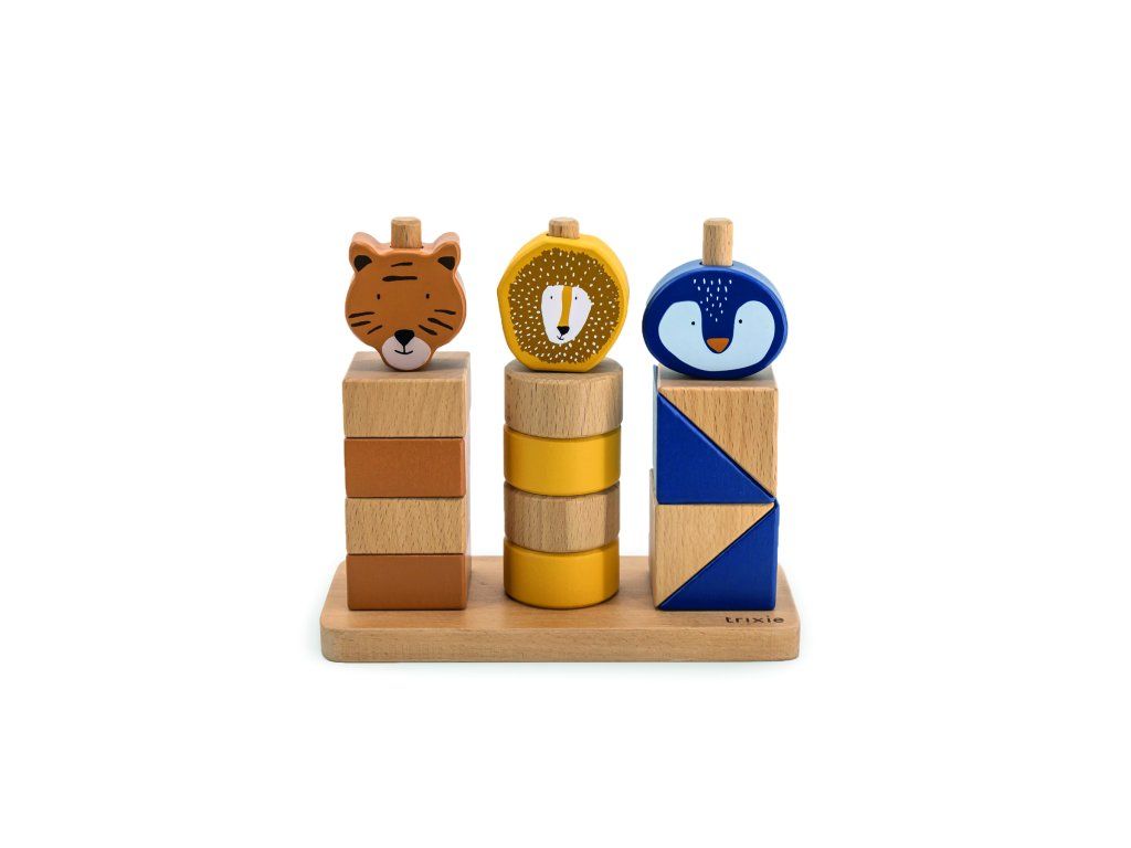 Krásné stohovací kostky, se kterými se můžete nekonečně bavit! S geometrickými kostmi můžete vytvářet zábavné kombinace a nakonec postavit hlavu oblíbeného zvířátka.