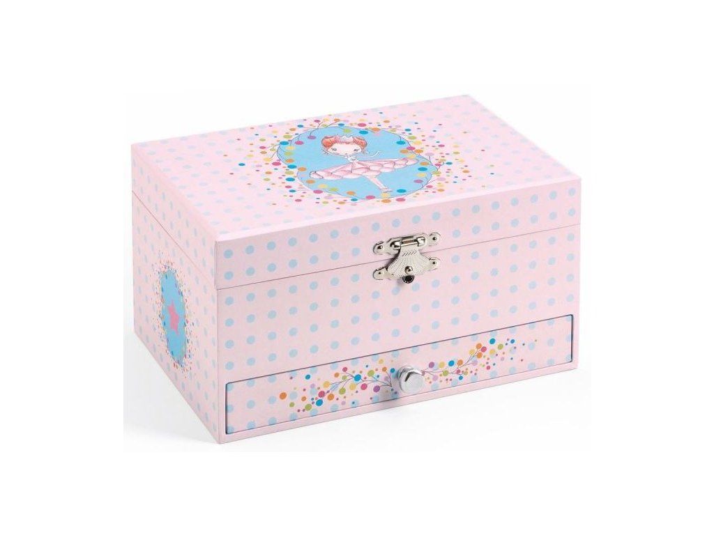 Nádherná hrací skříňka s postavičkou baleríny potěší každou malou parádnici. Skříňka slouží jako šperkovnice nebo skrýš na poklady. Po otevření víčka se z krabičky line příjemná melodie a balerína začne tančit. Uvnitř krabičky je polstrování, aby se poklady neponičily.