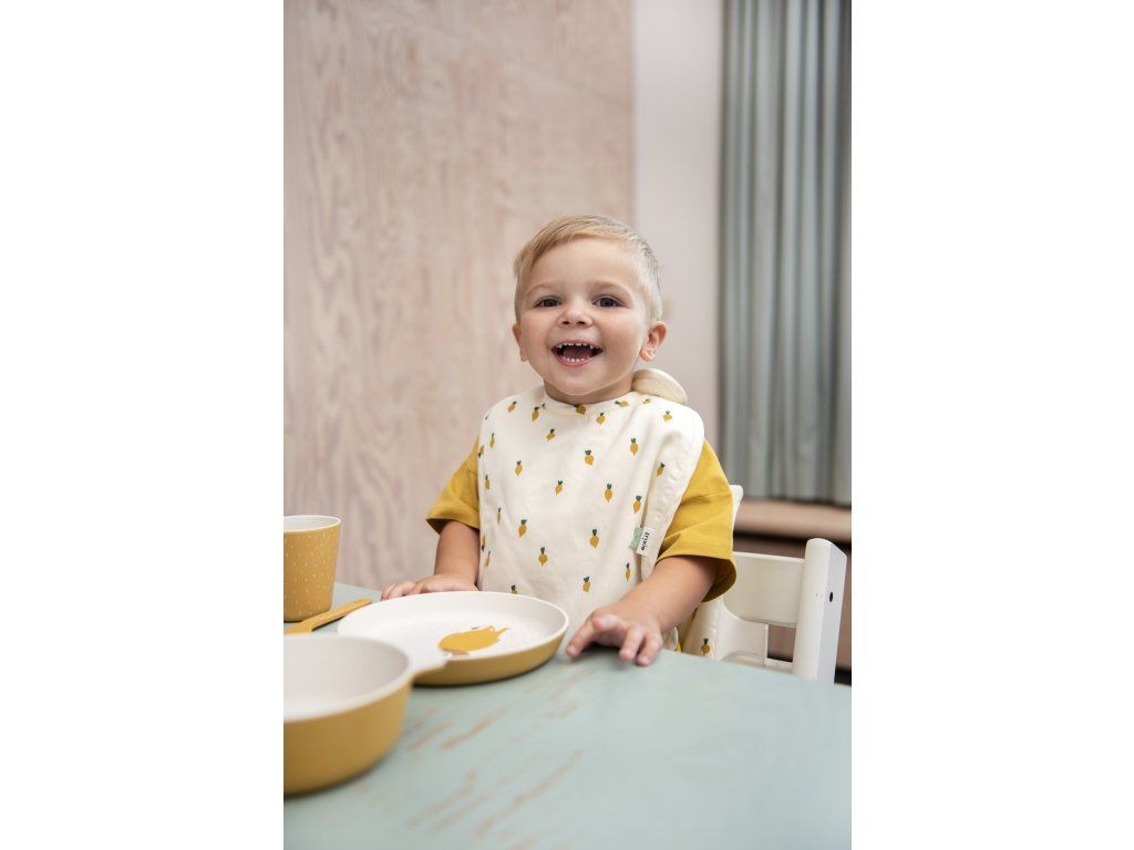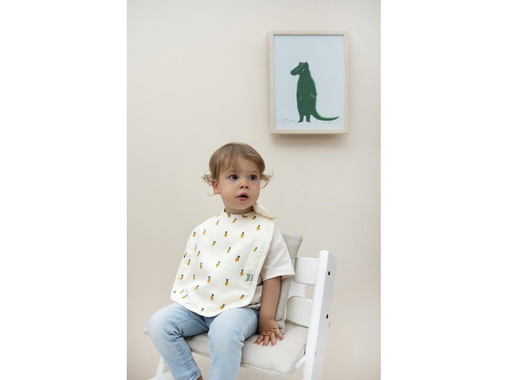 Krásný dětský bryndák z kolekce Trixie Print. Zapínání na dva patentky, díky kterým zvětšíte velikost a bryndák vám vydrží déle.