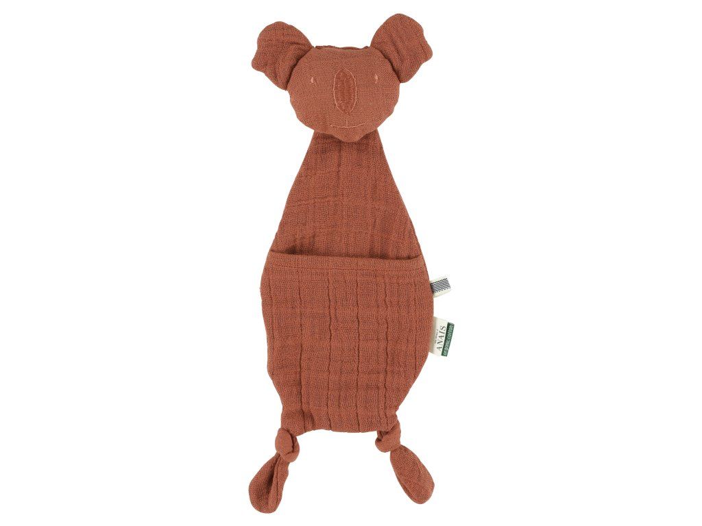 Měkoučký, mušelínový muchláček ve tvaru malého koaly je jeden z prvních kamarádů, se kterým bude vaše miminko sdílet všechna malá dobrodružství. Na malý uzlík na nožičkách můžete přidělat dudlík, takže už se nikdy neztratí. Ideální jako dárek.